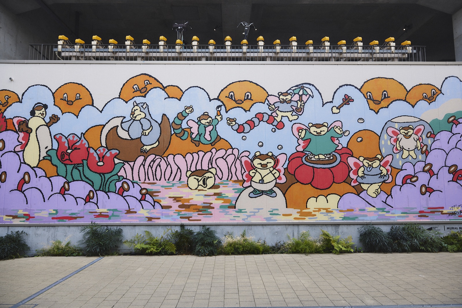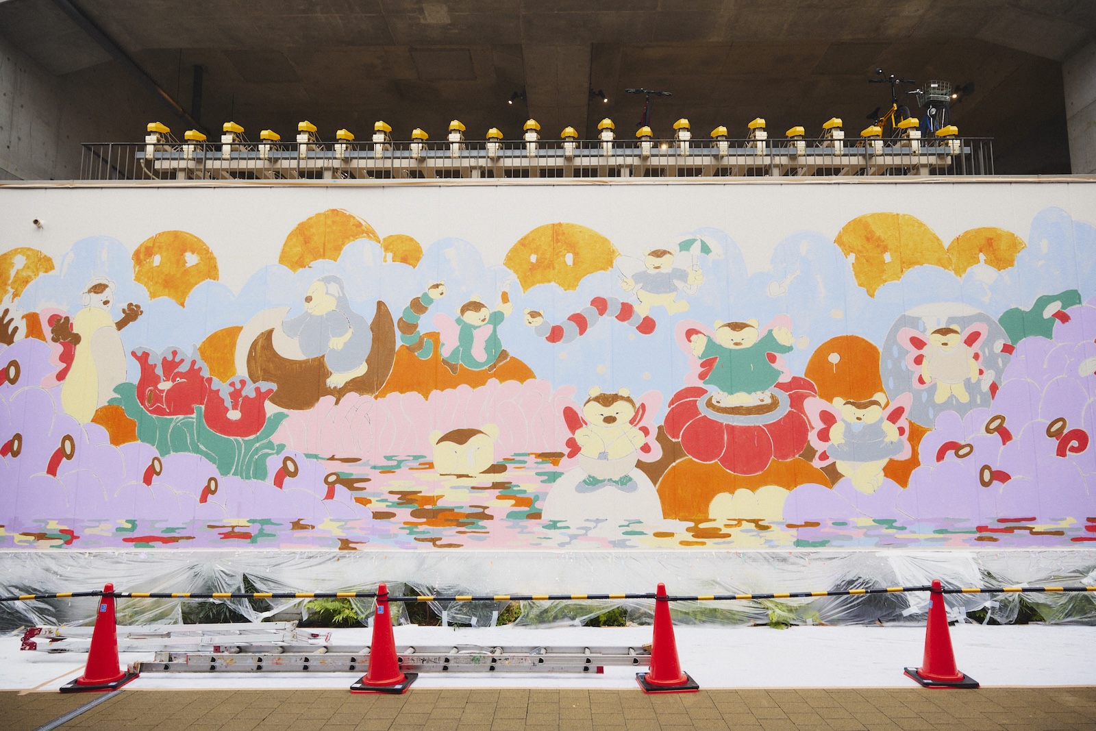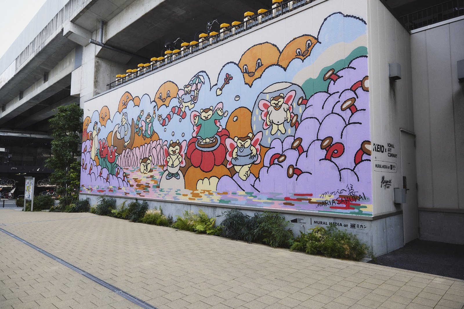 イベント会期中、下北沢に施されたアートは前述のインスタレーションだけではない。ミカン下北B街区の大きな壁面「MURAL MEDIA at MIKANSHI MOKITA」には、大手企業へのアートワーク提供なども手掛ける注目アーティスト、Maria Sakurai氏のペイント作品が存在感を放つ。Maria氏が会期中にライブペイントをし、完成させていく製作途中へ立ち入り解禁。本作品も、下北沢らしいアートを通した“実験”の一つだ。タイトルは「Melty Night」。