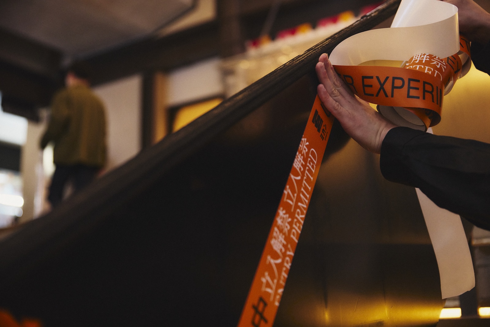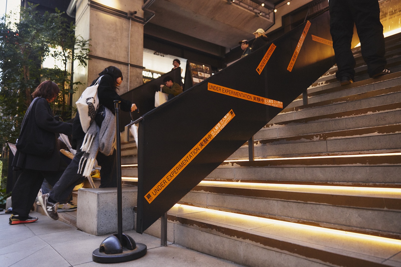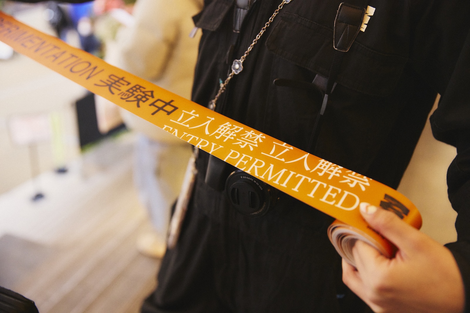 コンセプトを表す「UNDER EXPERIMENTATION 実験中」が書かれたオレンジ色のテープも増えていき、イベントの盛り上がりとともに、施設内も「実験中」へと変貌を遂げていく様子に、通行人も思わず足を止めていた。